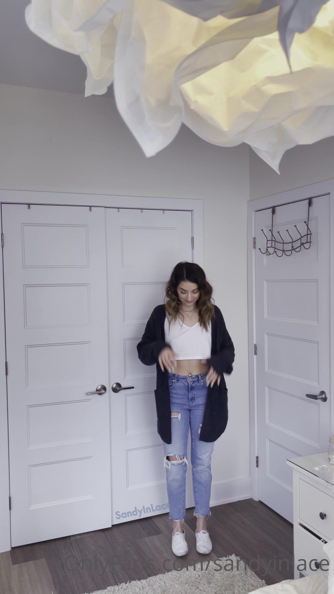 SandyInLace onlyfans Shy model posing in lingerie