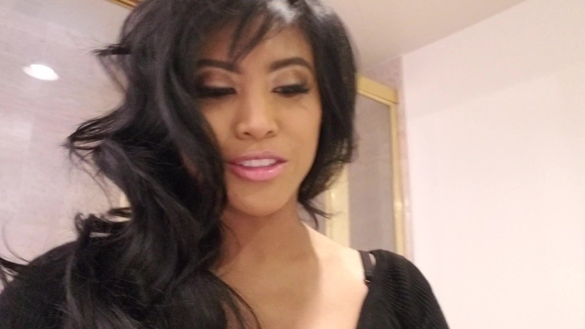 Ember Snow aka embersnow onlyfans black-haired lady caresses boobs